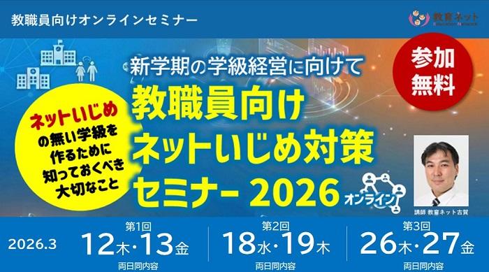 ●「教職員向け ネットいじめ対策セミナー 2026 オンライン」3月に開催 |