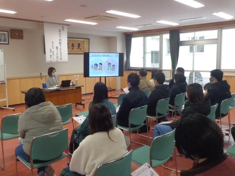 保護者の方に現在の子どもたちを取り巻くネット環境の実態と保護者ができるサポートを説明