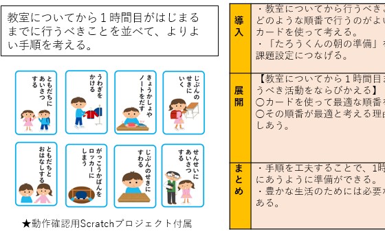 提供される教材は1年生の防災活動「さいがいがおきたら どうする?」に使われた防災プログラミングカードに加え、朝起きてから家を出るまでの活動をプログラミング的思考で考える、いってきますカードなど計3種類。教材はホームページから申し込みを行った小学校、教育委員会などに無償で郵送される。