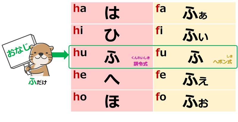 「ふ」だけ、hでもfでもどっちでもいいのか。
