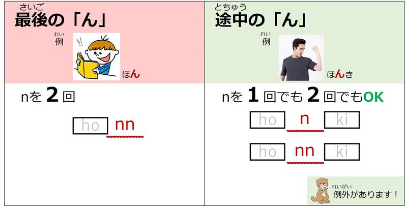 「ほん」の「ん」はnが2回。