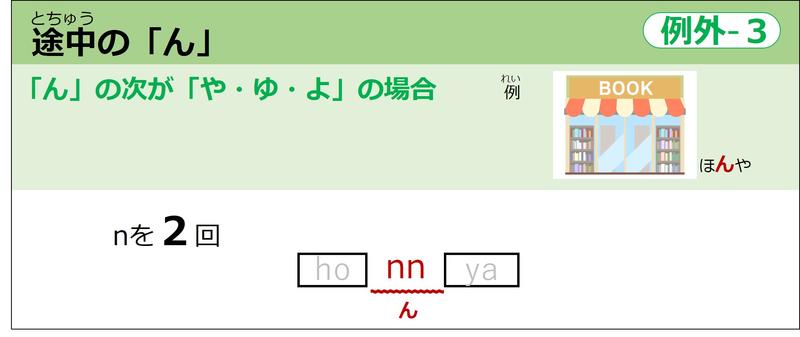 途中の「ん」でも、「ん」の次が「やゆよ」の時は、nが2回いるってこと。