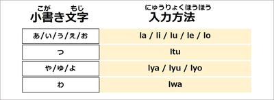 ↓ ↓ ↓ 小書き文字のタイピング ↓ ↓ ↓