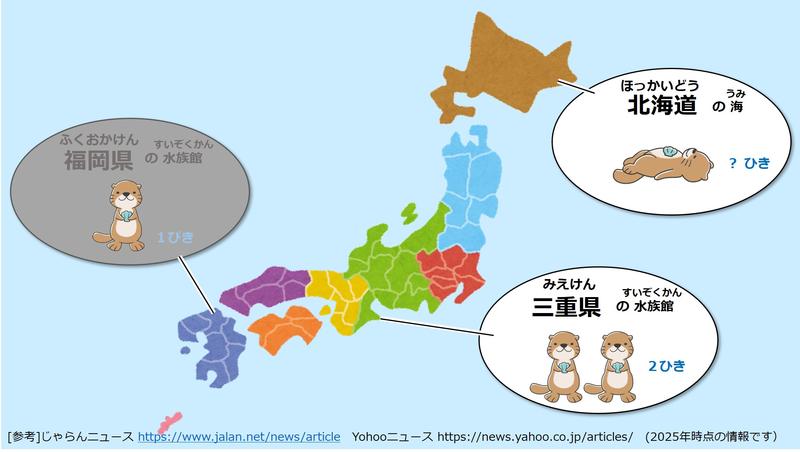 日本では、水族館で( 2 )匹のらっこを見ることができます。