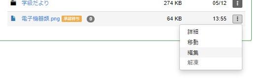 - プルダウンメニューがあらわれますので、その中の[編集]を選んでください。
