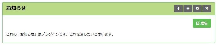 - 削除するプラグイン(下の画像の場合は「お知らせ」)の右上にある [×] のボタンを押してください。