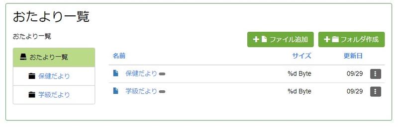 - キャビネットの中にある左メニューから、おたよりを保存するフォルダを選んでください。学校によってキャビネットのフォルダの数、名称は変わります。