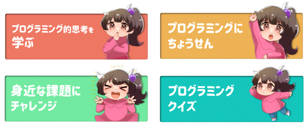 プログラミング的思考の基礎となる「順序」「分岐」「繰り返し」などを動画で学ぶことができるサービスです。